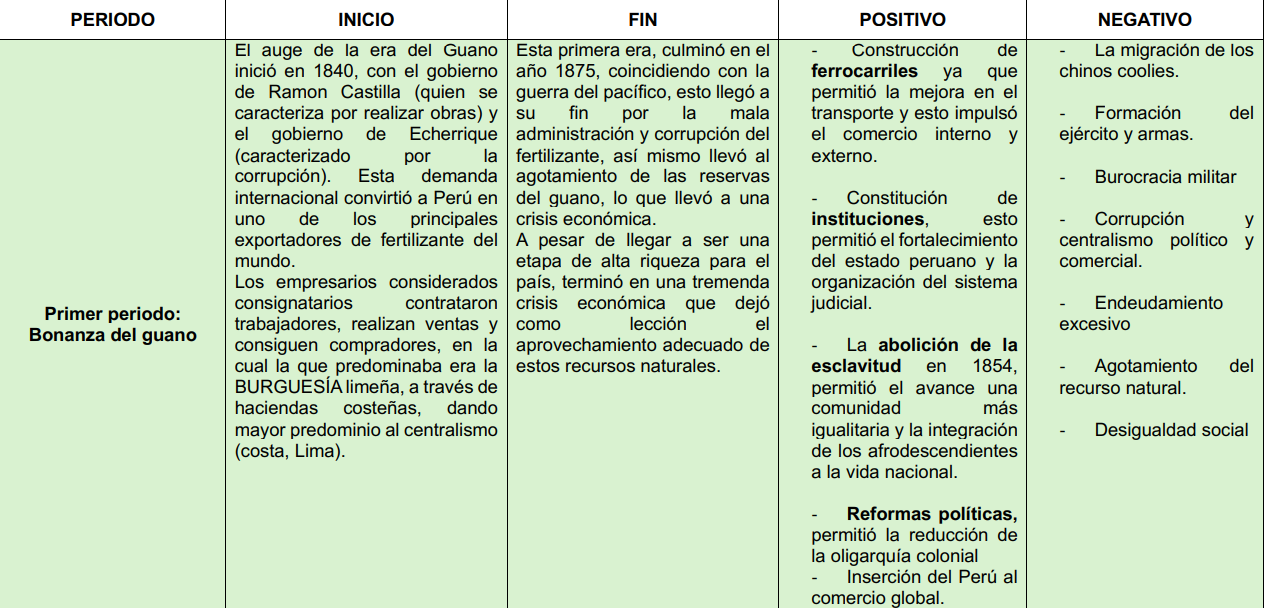 El Perú ha vivido distintos momentos de prosperidad económica a lo largo de su historia. Estos periodos marcaron cambios importantes en la economía y el desarrollo del país.